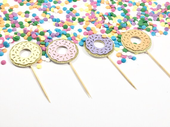 12 Donut Cupcake Toppers Donut Party Dessert Table Toppers Donut Party Decor