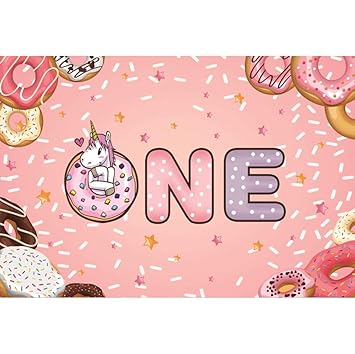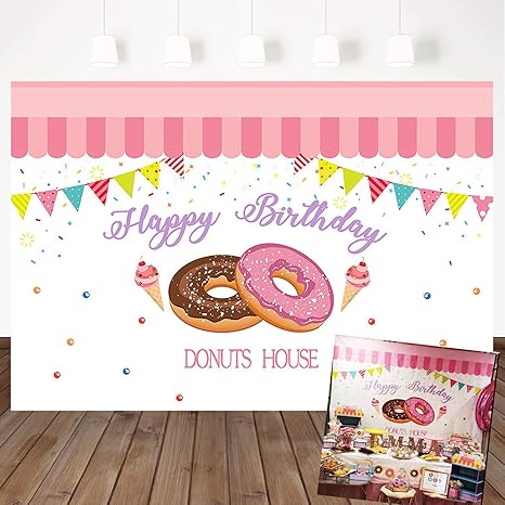 Mehofoto Happy Birthday Background Pink Banner Donuts Theme Backgrop 7x5ft Colored Dot Decoration Vinyl Photo Dessert Table Booth Banner Decoration