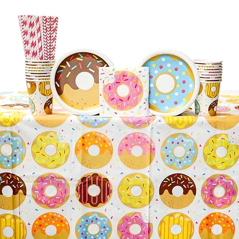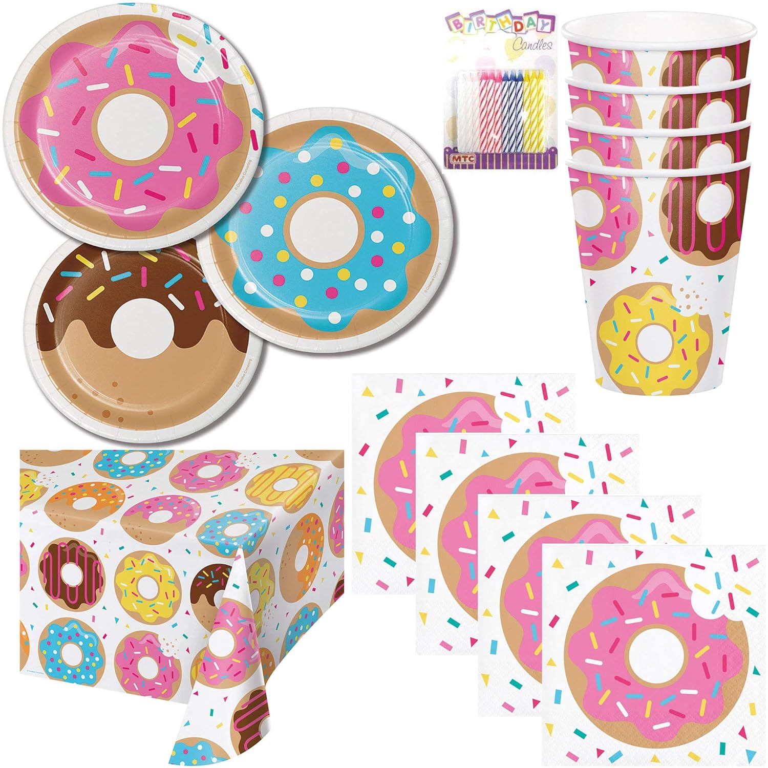 Donut Theme Party Supplies Pack Serves 16 Dessert Plates Beverage Napkins Cups Table Cover And Birthday Candles