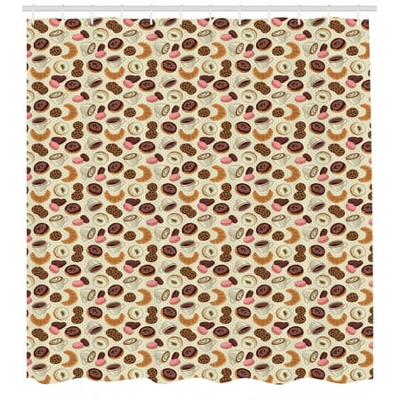 Dessert Shower Curtain Patisserie Theme Pattern Chocolate Coated Donut Cookie Latte Croissant Fabric Bathroom Set With Hooks 69w X 70l Inches Pale