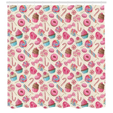 Candy Cane Shower Curtain Yummy Sweet Lollipop Candy Macaroon Cupcake And Donut On Polka Dots Pattern Fabric Bathroom Set With Hooks 69w X 75l