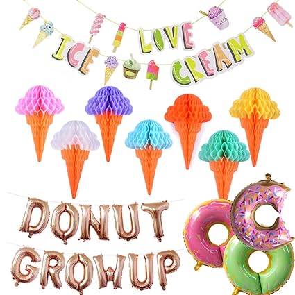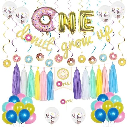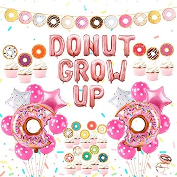 Donut birthday party decorations kit donut grow up banner mylar foil and latex balloons cupcake and cake diy toppers for donut birthday party decorations. This colorful pattern features bright colors precious designs and there are plenty quality decorations for your entire party space. No matter what youre looking for or where you are in the world our global marketplace of sellers can help you find unique and affordable options.