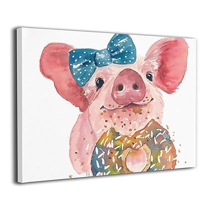 Amazon Com Canvas Wall Art Pig Eating A Donut Decor