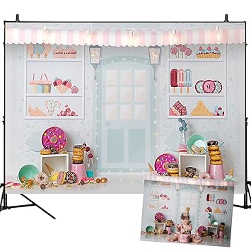 Mehofoto Dessert Shop Theme Backdrop Donut Decoration Ice Cream Girl Birthday Party Background 7x5ft Vinyl Backdrops Studio Photography Props Birthday