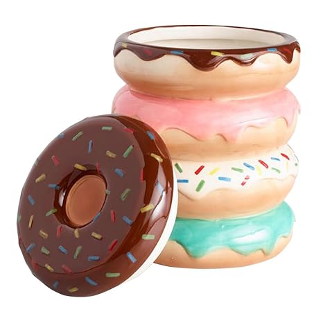 Donut Cookie Candy Jar With Cover Colorful Bright Donuts With Sprinkles Design Sweets Chocolate Candies And Confection Keeper Jars Gift