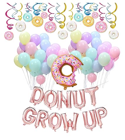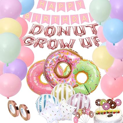 Donut Birthday Party Decorations Kit Donut Grow Up Banner Mylar Foil And Latex Balloons And Swirls For Donut Birthday Party Decorations