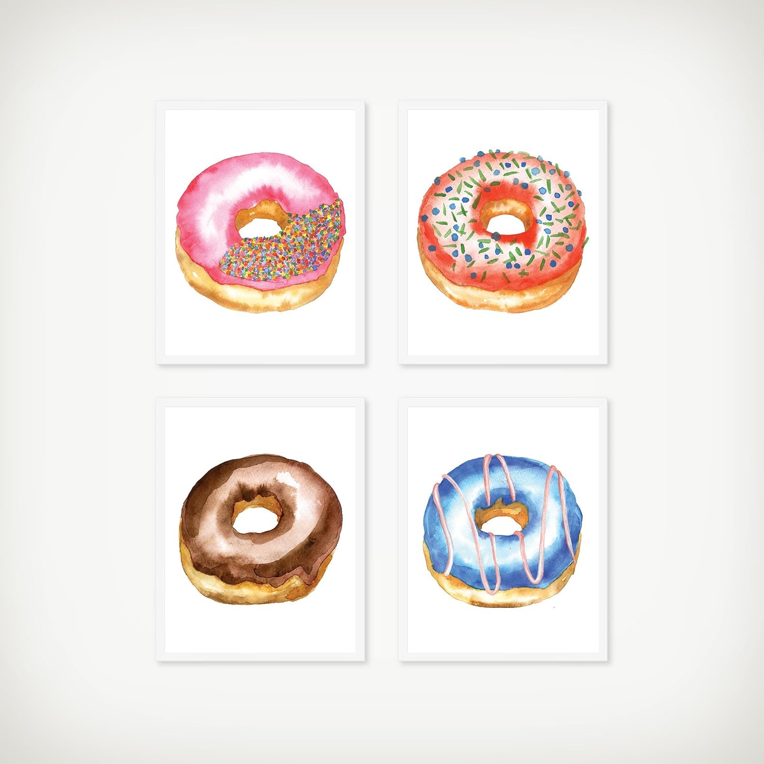 Amazon Com Donut Watercolor Art Print Set Of 4 Wall Art