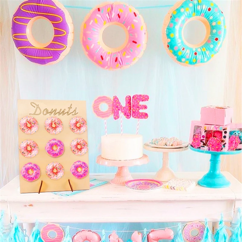 9 diy donut wall ideas youll want to steal october 29 2019 2016 was the year of the donut with donut walls first coming onto our radar more than a year ago when we did a post on sweet tables and included a professionally made donut wall which you can see here. Donut 1 first birthday party supplies set baphile party decoration kit donut foil balloons chair garland birthday baby photo banner for baby shower donut party wall decor 1099 10. When you want you wedding color palette front and center incorporate it into your wedding desserts with a unique display.