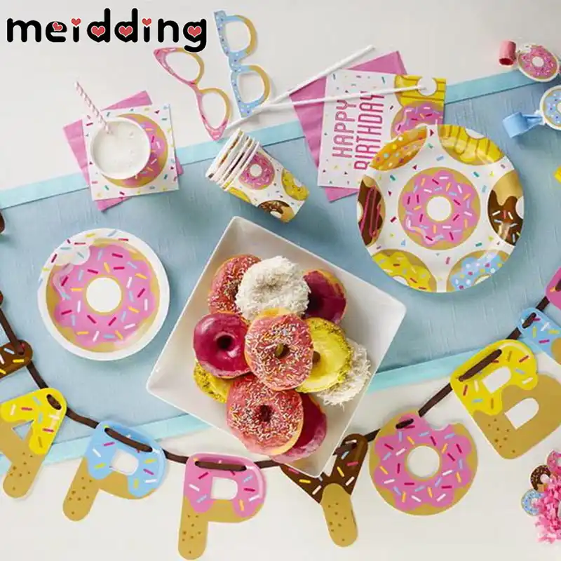 Us 0 81 18 Off Meidding 8pcs Disposable Tableware Paper Plates Wedding Decoration Donut Party Theme Baby Shower 1st Birthday Party Supplies In