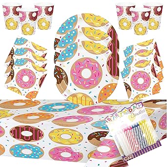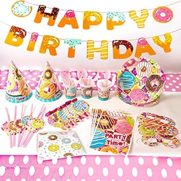 Bleuzoo donut party supplies party themed set birthday decorations bundle donut grow up includes. Big and small plates tablecloth danglers cups napkins serves 16 46 out of 5 stars 18. 50 out of 5 stars 2.